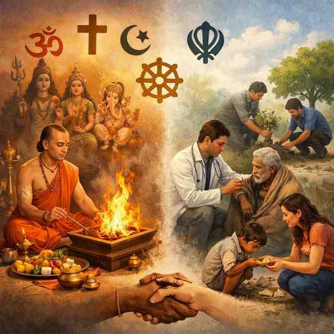 अगर कोई व्यक्ति पूजा करता है, लेकिन उसके व्यवहार में करुणा, सत्य और ईमानदारी नहीं है, तो उसकी धार्मिकता अधूरी रह जाती है।